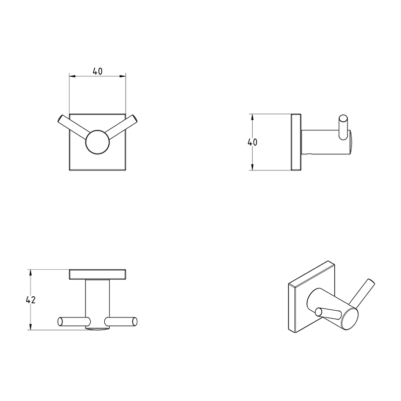 Άγκιστρο μπάνιου διπλό επιτοίχιας τοποθέτησης από ορείχαλκο σε χρωμέ φινίρισμα. Ανήκει στην σειρά αξεσουάρ μπάνιου Delta της ελληνικής εταιρείας Verdi. Διαστάσεις προϊόντος : 4,4 x 4,2 x 4 cm.