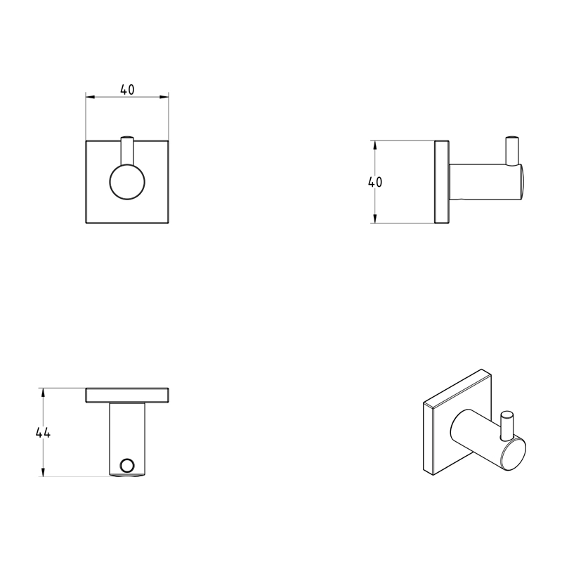 Άγκιστρο μπάνιου μονό επιτοίχιας τοποθέτησης από ορείχαλκο σε χρωμέ φινίρισμα. Ανήκει στην σειρά αξεσουάρ μπάνιου Delta της ελληνικής εταιρείας Verdi. Διαστάσεις προϊόντος : 4,4 x 4,4 x 4 cm.