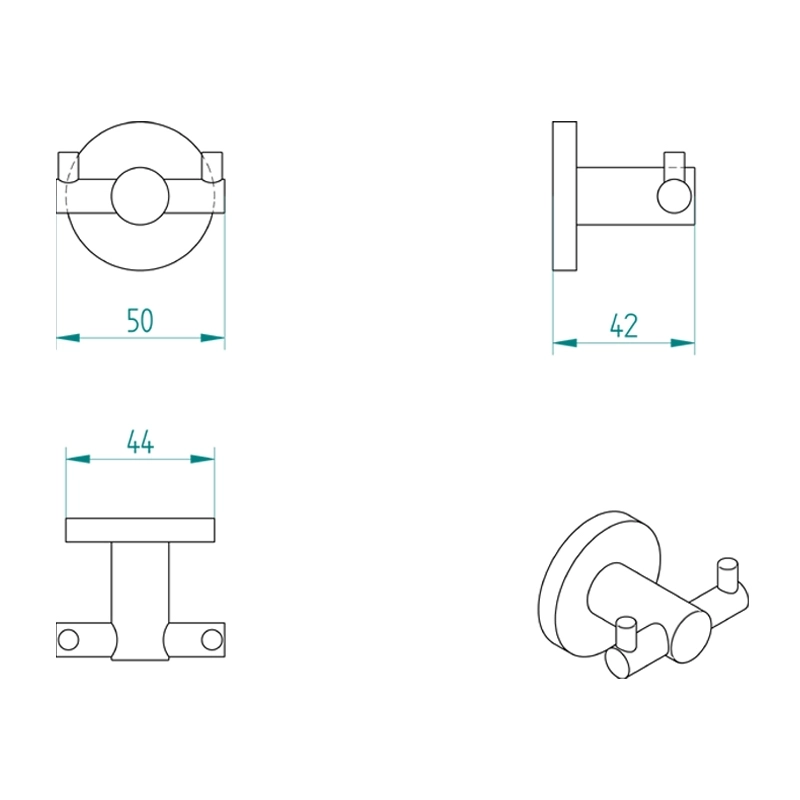 Άγκιστρο μπάνιου διπλό επιτοίχιας τοποθέτησης από ορείχαλκο σε χρωμέ φινίρισμα. Ανήκει στην σειρά αξεσουάρ μπάνιου Sigma της ελληνικής εταιρείας Verdi. Διαστάσεις προϊόντος : 5 x 4,2 x 4,4 cm.