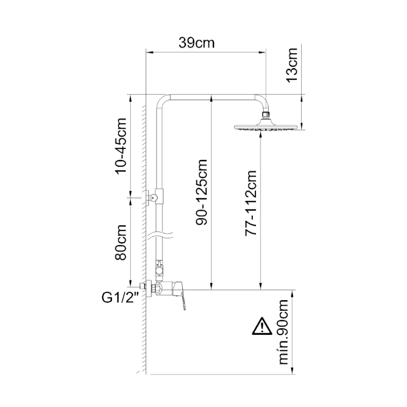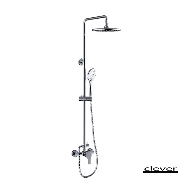 Πλήρες σύστημα ντους που περιλαμβάνει στήλη ντους ρυθμιζόμενου ύψους με κεφαλή 23εκ, αναμεικτική μπαταρία ,σπιράλ 150εκ και τηλέφωνο 3 λειτουργιών. Ελάχιστο ύψος τοποθέτησης από το δάπεδο 90εκ.