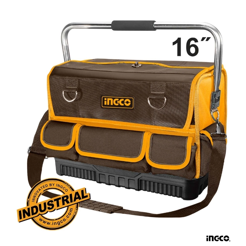 Εργαλειοθήκη με ατσάλινη λαβή & μαλακή επένδυση. 14 Εσωτερικές και εξωτερικές τσέπες για εργαλεία. Ρυθμιζόμενος ιμάντας ώμου. Ενισχυμένος άκαμπτος πλαστικός πάτος για προστασία από βρεγμένες επιφάνειες. Μέγιστο φορτίο 20kg.