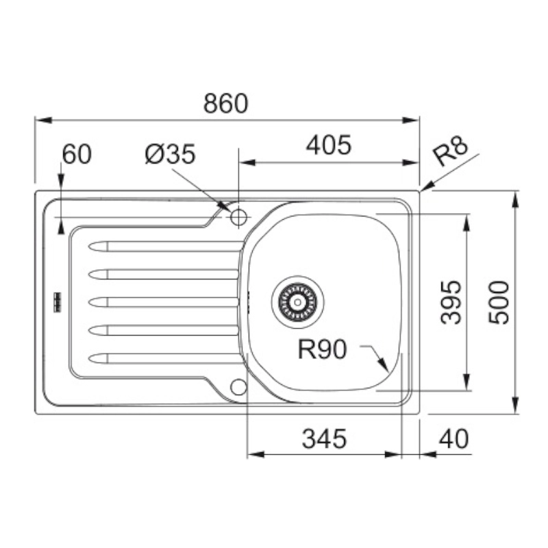 Ανοξείδωτος νεροχύτης Onda Line OLX 611-86 860x500mm, αντιστρεφόμενη ποδιά, περιλαμβάνει σιφόνια και βαλβίδες.
