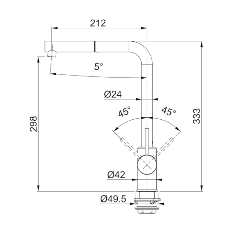 Αναμεικτική Μπαταρία κουζίνας Sirius L, ντους, με πλαϊνό μοχλό, χρωμέ,με περιστρεφόμενο ρουξούνι.