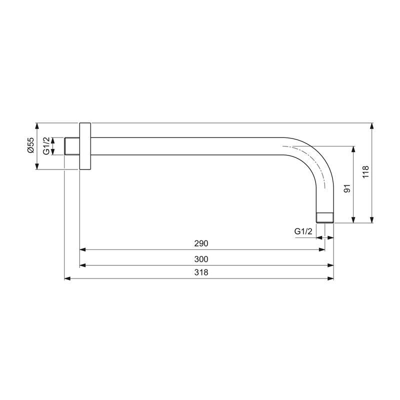 Βραχίονας τοίχου μήκους 30 cm για σύνδεση κεφαλής/κώδωνα ντους. Κατασκευασμένος από ορείχαλκο σε χρωμέ φινίρισμα και γυαλιστερή επιφάνεια. Συνδέσεις 1/2 ίντσας.