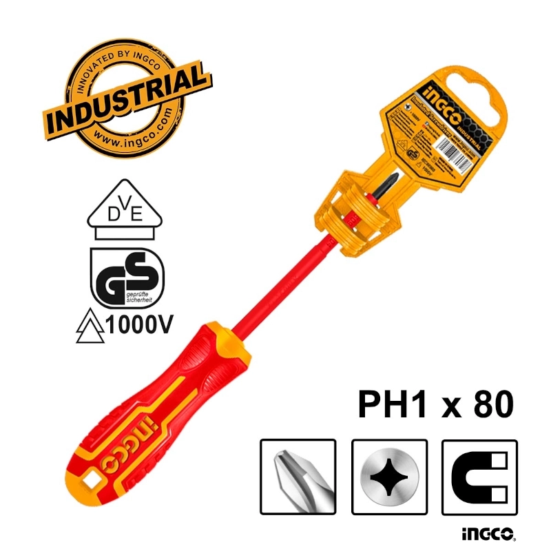 Ingco Κατσαβίδι Ηλεκτρολόγου VDE Σταυρού PH1x80mm