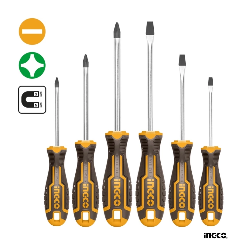 Μαγνητικά κατσαβίδια με εργονομική λαβή. Περιεχόμενα συσκευασίας: 1 τεμ. SL5.5 x 75mm - 1 τεμ. SL5.5 x 100mm - 1 τεμ. SL6.5 x 150mm - 1 τεμ. PH1 x 75mm - 1 τεμ. PH1 x 100mm - 1 τεμ. PH2 x 125mm.