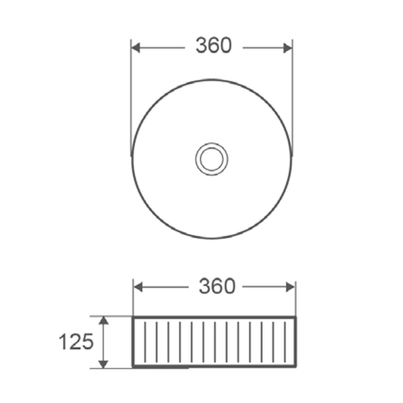 Μοντέρνος επικαθήμενος στρογγυλός νιπτήρας με εξωτερικό ραβδωτό σχέδιο χωρίς οπή για μπαταρία σε λευκό φινίρισμα από υλικό κατασκευής πορσελάνη με διάμετρο 36 x 12.5cm.