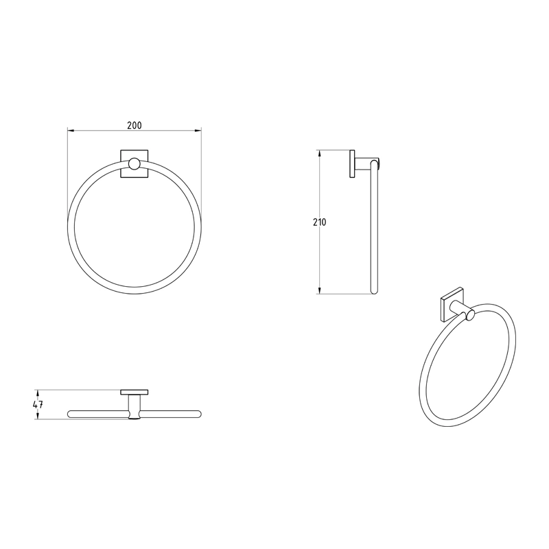 Κρίκος Πετσέτας μπάνιου επιτοίχιας τοποθέτησης από ορείχαλκο σε χρωμέ φινίρισμα. Ανήκει στην σειρά αξεσουάρ μπάνιου Delta της ελληνικής εταιρείας Verdi. Διαστάσεις προϊόντος : 20 x 4,7 x 21 cm.