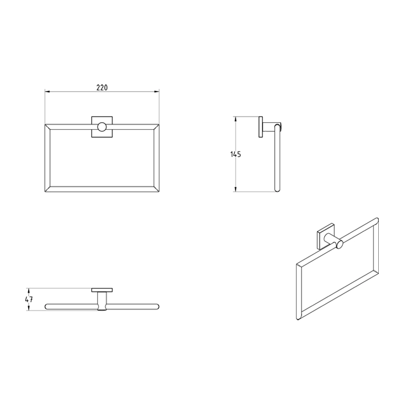 Κρίκος Πετσέτας μπάνιου επιτοίχιας τοποθέτησης από ορείχαλκο σε χρωμέ φινίρισμα. Ανήκει στην σειρά αξεσουάρ μπάνιου Delta της ελληνικής εταιρείας Verdi. Διαστάσεις προϊόντος : 22 x 4,7 x 14,5 cm.