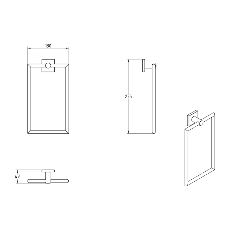 Κρίκος Πετσέτας μπάνιου επιτοίχιας τοποθέτησης από ορείχαλκο σε χρωμέ φινίρισμα. Ανήκει στην σειρά αξεσουάρ μπάνιου Delta της ελληνικής εταιρείας Verdi. Διαστάσεις προϊόντος : 13 x 4,7 x 23,5 cm.