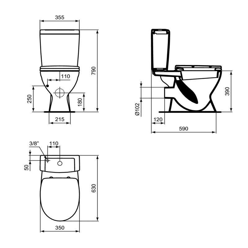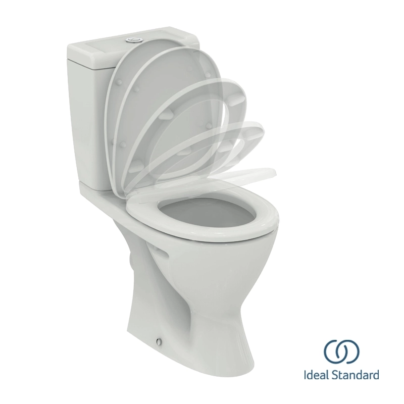 Eurovit+ λεκάνη χαμηλής πίεσης κάθετης αποχέτευσης (ΚΑ), με καζανάκι 2 λειτουργιών, εισαγωγή νερού από πυθμένα και κάθισμα soft closing.