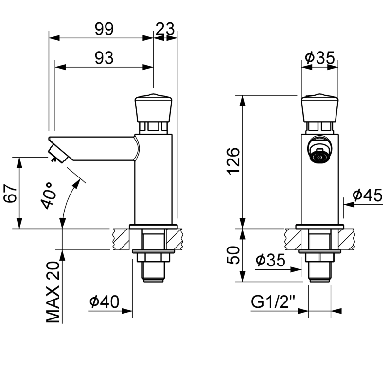 Αυτοκλειόμενη μπαταρία νιπτήρος ιταλικής κατασκευής.