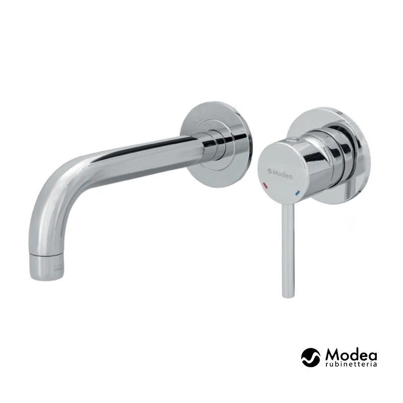 Modea Etna 00-08510 - Πλήρες σύστημα εντοιχιζόμενης αναμεικτικής μπαταρίας νιπτήρος με ρουξούνι προβολής 20 cm. Το σώμα της μπαταρίας είναι κατασκευασμένο από ορείχαλκο σε χρωμέ φινίρισμα και γυαλιστερή επιφάνεια. Συμπεριλαμβάνεται ο εσωτερικός μηχανισμός εντοιχισμού.