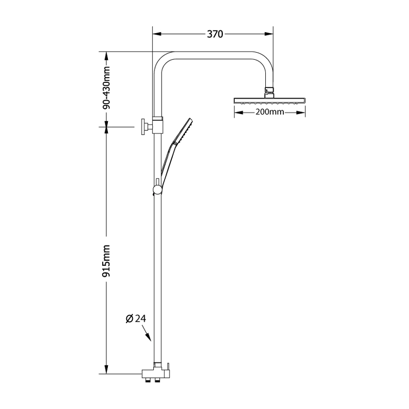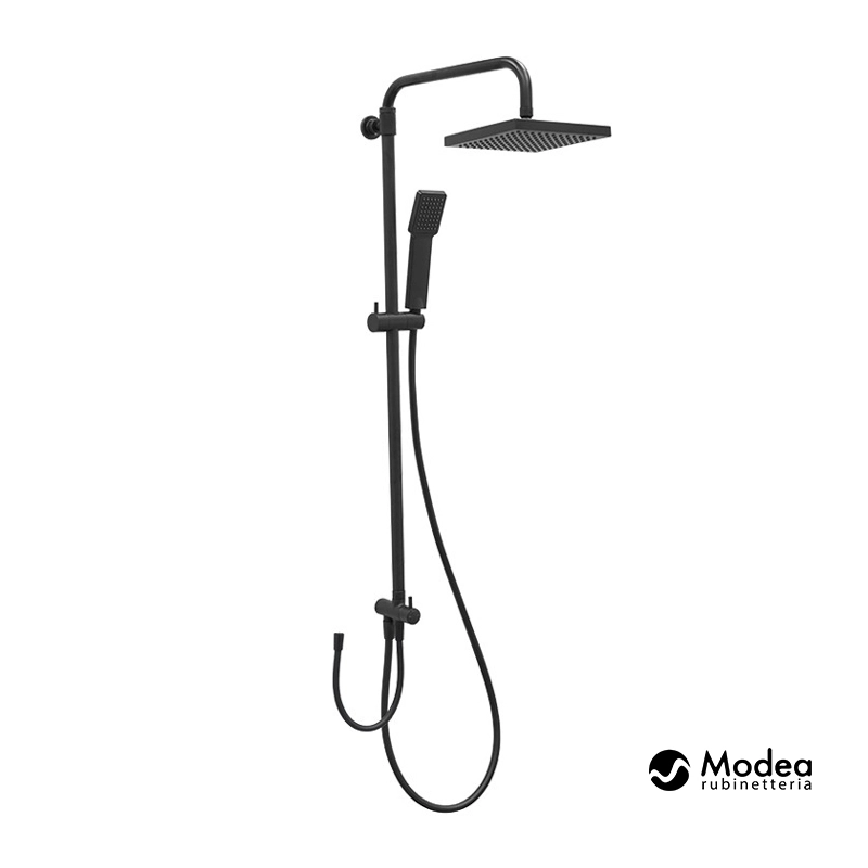 Στήλη Ντους της εταιρείας Modea ρυθμιζόμενου ύψους 100,5-134,5 cm για σύνδεση με μπαταρία λουτρού. Διαθέτει κεφαλή ντους διαστάσεων 200x200 mm με 1 μοτίβο ροής, τηλέφωνο ντους 1 λειτουργίας με διάσταση δίσκου 10 cm και σπιράλ 150 cm.