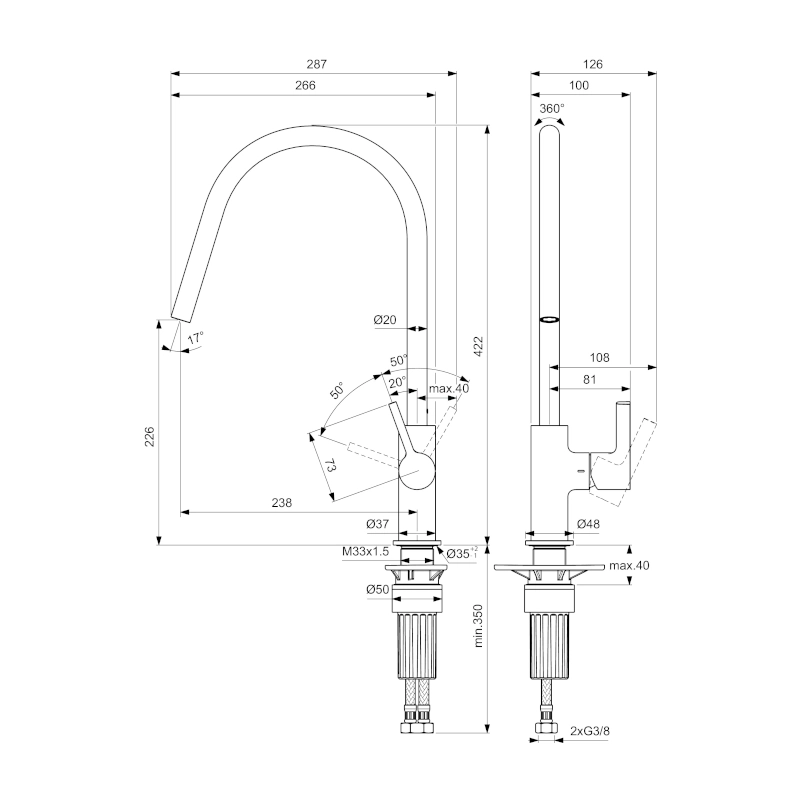 Μπαταρία κουζίνας με στρογγυλεμένο περιστρεφόμενο ρουξούνι.