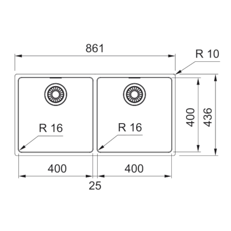 Ανοξείδωτος νεροχύτης Maris MRX 220-40-40 861x436mm, ένθετη/flushmount τοποθέτηση, χωρίς ποδιά, 2 γούρνες, ελάχιστο μέγεθος ντουλαπιού 90cm, με σιφόνια και βαλβίδες.