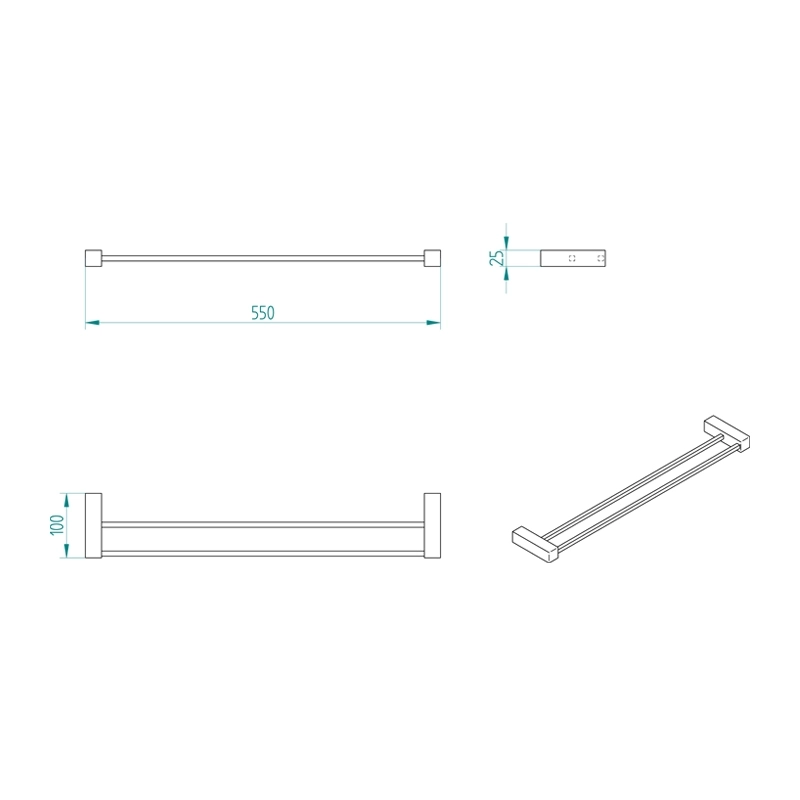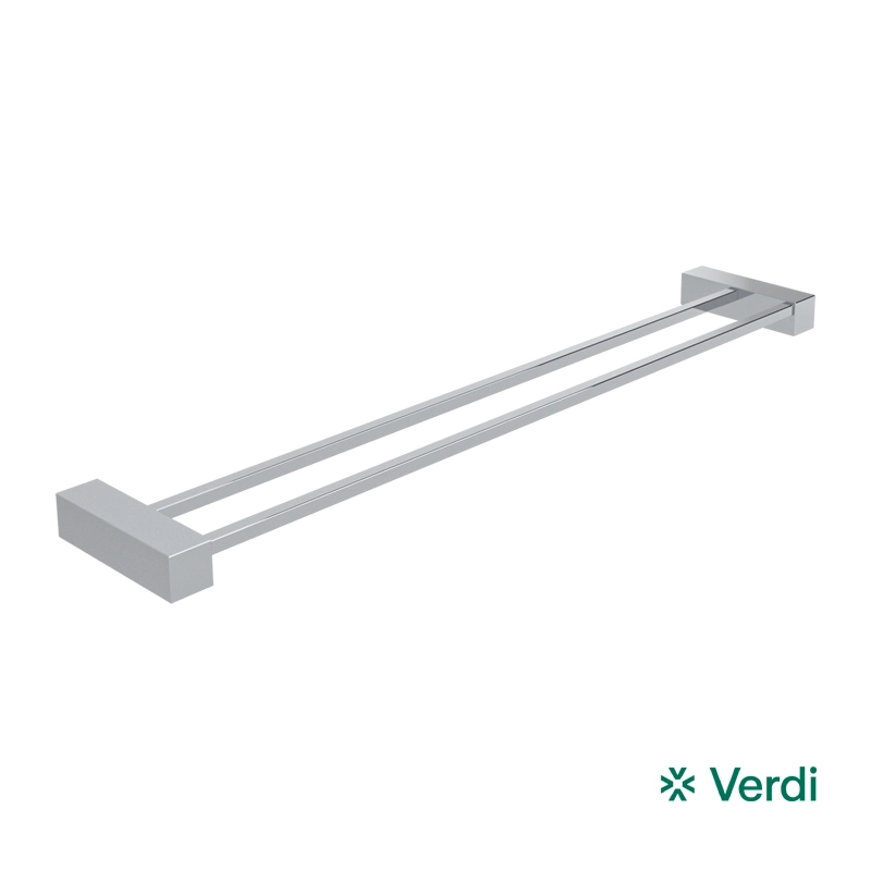 Πετσετοθήκη μπάνιου διπλή επιτοίχιας τοποθέτησης από ορείχαλκο σε χρωμέ φινίρισμα. Ανήκει στην σειρά αξεσουάρ μπάνιου Kappa της ελληνικής εταιρείας Verdi. Διαστάσεις προϊόντος : 55 x 10 x 2,5 cm.