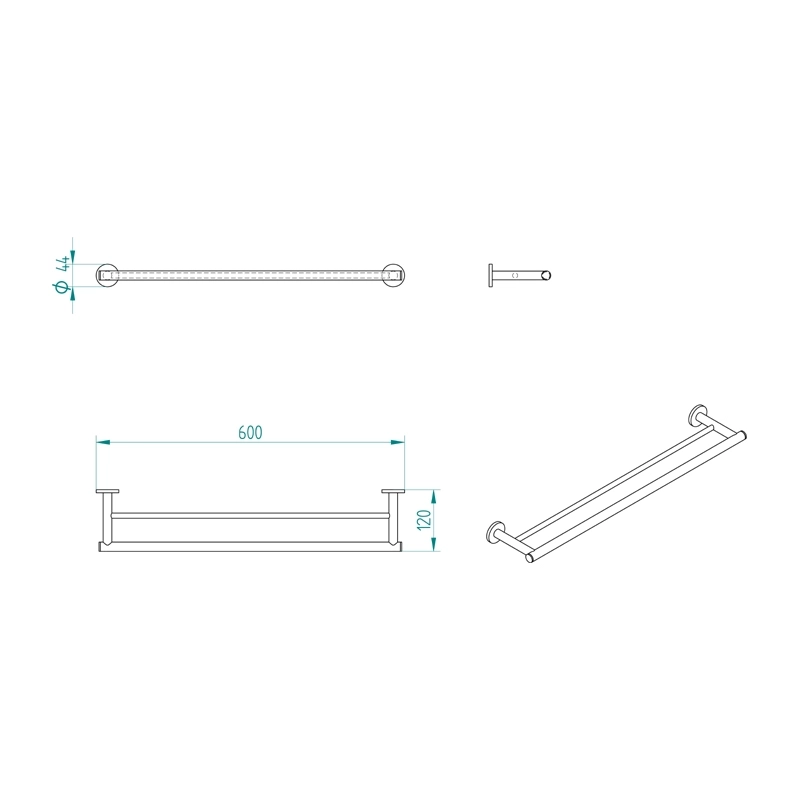 Πετσετοθήκη μπάνιου διπλή επιτοίχιας τοποθέτησης από ορείχαλκο σε χρωμέ φινίρισμα. Ανήκει στην σειρά αξεσουάρ μπάνιου Omicron της ελληνικής εταιρείας Verdi. Διαστάσεις προϊόντος : 60 x 12 x 4,4 cm.