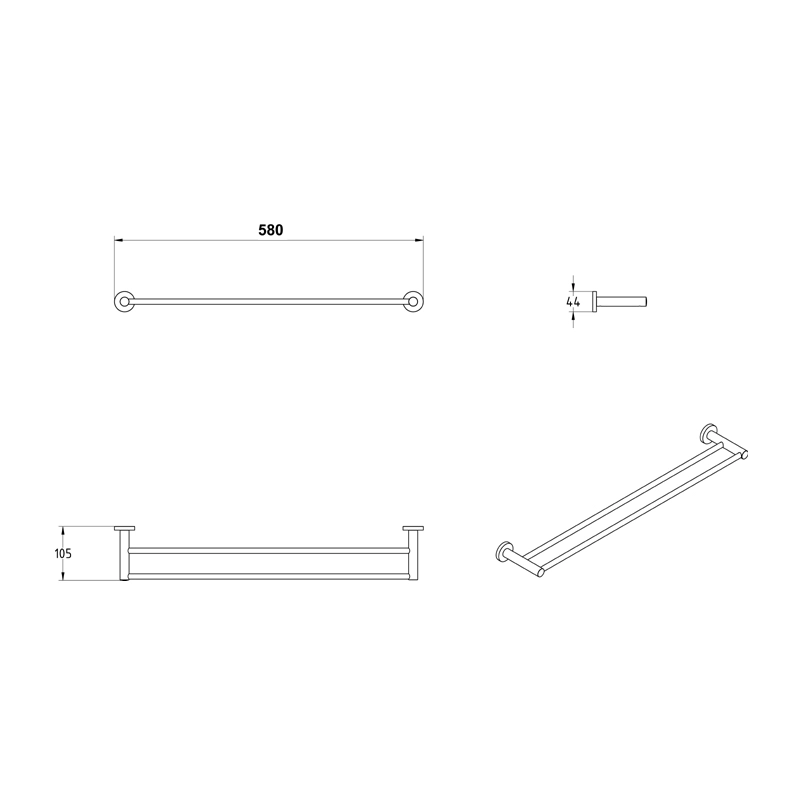 Πετσετοθήκη μπάνιου διπλή επιτοίχιας τοποθέτησης από ορείχαλκο σε χρωμέ φινίρισμα. Ανήκει στην σειρά αξεσουάρ μπάνιου Sigma της ελληνικής εταιρείας Verdi. Διαστάσεις προϊόντος : 58 x 10,5 x 4,4 cm.