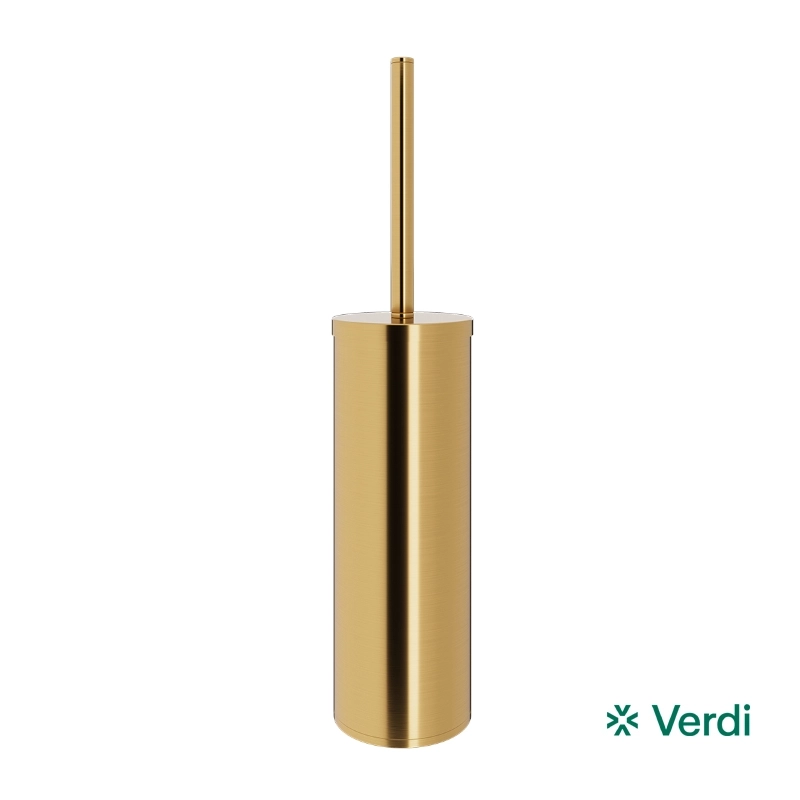 Πιγκάλ μπάνιου επιδαπέδιας τοποθέτησης από ορείχαλκο/πλαστικό σε Brushed Warm Gold PVD φινίρισμα. Ανήκει στην σειρά αξεσουάρ μπάνιου της ελληνικής εταιρείας Verdi. Διαστάσεις προϊόντος : 8 x 8 x 41 cm.