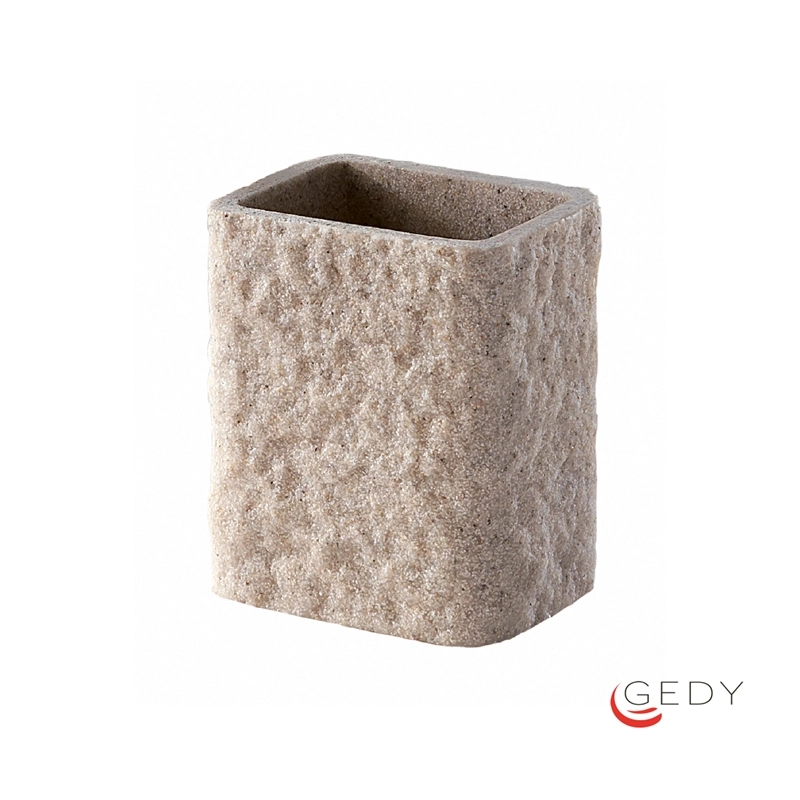 Ποτηροθήκη μπάνιου επιτραπέζιας τοποθέτησης από συνθετικό υλικό σε μπεζ φινίρισμα. Ανήκει στην σειρά αξεσουάρ μπάνιου Aries της ιταλικής εταιρείας Gedy. Διαστάσεις προϊόντος : 9,2 x 6,5 x 11 cm.