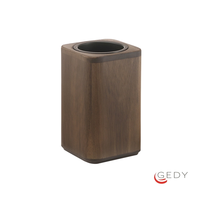 Ποτηροθήκη μπάνιου επιτραπέζιας τοποθέτησης από bamboo σε καφέ φινίρισμα. Ανήκει στην σειρά αξεσουάρ μπάνιου Dafne της ιταλικής εταιρείας Gedy. Διαστάσεις προϊόντος : 8 x 8 x 13 cm.