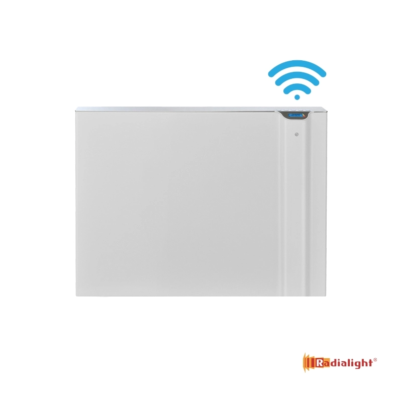 Ψηφιακός θερμοπομπός διπλής λειτουργίας, Klima WiFi 1000 Watt της Ιταλικής Radialight. To Radialight Klima WiFi συνδέεται στο wifi σας και μπορείτε να το χειριστείτε απομακρυσμένα, από τη φορητή συσκευή σας (smartphone ή tablet), μέσω της δωρεάν εφαρμογής Radialight App. Επιπλέον με το χειριστήριο που βρίσκεται πάνω του, μπορείτε να το λειτουργήσετε ακόμα και όταν το wifi σας δε λειτουργεί. Μέσω του wifi σας μπορείτε να συνδέσετε και να διαχειριστείτε όλα τα Radialight WiFi σώματα που έχετε εγκαταστήσει. Δημιουργώντας έτσι ένα σύστημα πολλαπλών ζωνών, μπορείτε να ελέγχετε τη λειτουργία κάθε σώματος, σε κάθε δωμάτιο, ξεχωριστά. Διπλό σύστημα θέρμανσης Radialight® DUAL-THERM με υπέρυθρη ακτινοβολία (infrared radiation) και φυσική ροή θερμού αέρα (natural convection). Ο συνδυασμός των δύο συστημάτων προσφέρει ομοιόμορφη και άμεση θέρμανση στο χώρο δημιουργώντας ευχάριστο περιβάλλον άνεσης. Οθόνη LCD με φωτισμό και ευδιάκριτα πλήκτρα για απλό χειρισμό. Η επιτοίχια εγκατάσταση των θερμοπομπ.