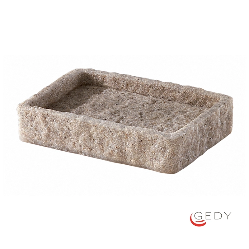 Σαπουνοθήκη μπάνιου επιτραπέζιας τοποθέτησης από συνθετικό υλικό σε μπεζ φινίρισμα. Ανήκει στην σειρά αξεσουάρ μπάνιου Aries της ιταλικής εταιρείας Gedy. Διαστάσεις προϊόντος : 12,2 x 8,6 x 2,4 cm.