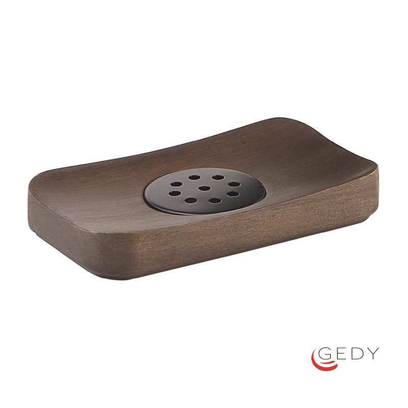 Σαπουνοθήκη μπάνιου επιτραπέζιας τοποθέτησης από bamboo σε καφέ φινίρισμα. Ανήκει στην σειρά αξεσουάρ μπάνιου Dafne της ιταλικής εταιρείας Gedy. Διαστάσεις προϊόντος : 14 x 8 x 2,2 cm.