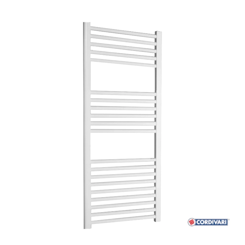 Θερμαντική πετσετοκρεμάστρα μπάνιου σε λευκό χρώμα της εταιρίας Cordivari, ιδανική για τη θέρμανση του μπάνιου και το στέγνωμα των πετσετών. Δεν περιλαμβάνεται διακόπτης - αντίσταση.