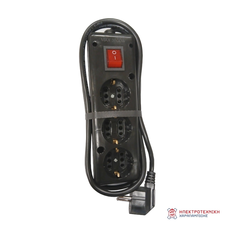 Τρίπριζο Ευθύ με Διακόπτη 3x1mm 1.5m