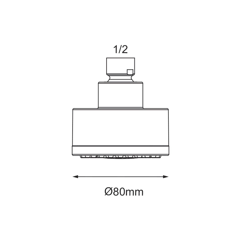 Στρογγυλή κεφαλή ντους διαμέτρου 8cm με 1 λειτουργία ροής σε χρωμέ φινίρισμα και γυαλιστερή επιφάνεια. Μπορεί να τοποθετηθεί με τον κατάλληλο βραχίονα στην οροφή ή τον τοίχο του μπάνιου με σύνδεση 1/2 ίντσας.